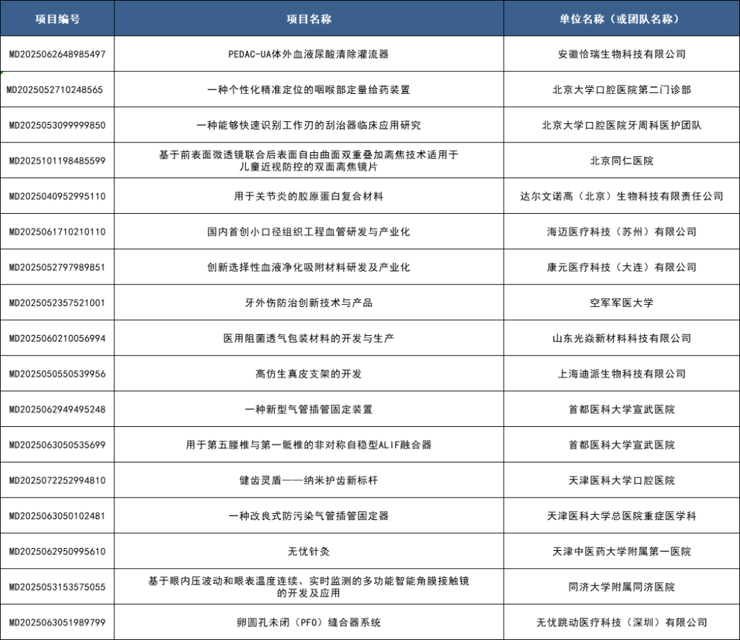 项目入围公示|第八届(2025)中国医疗器械创新网创业大赛总决赛